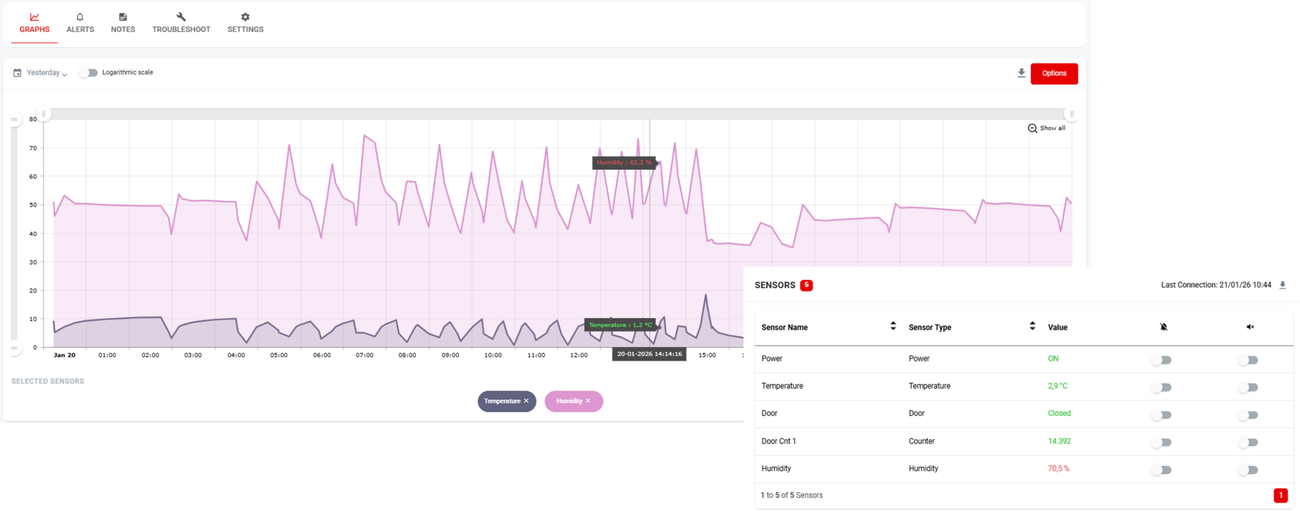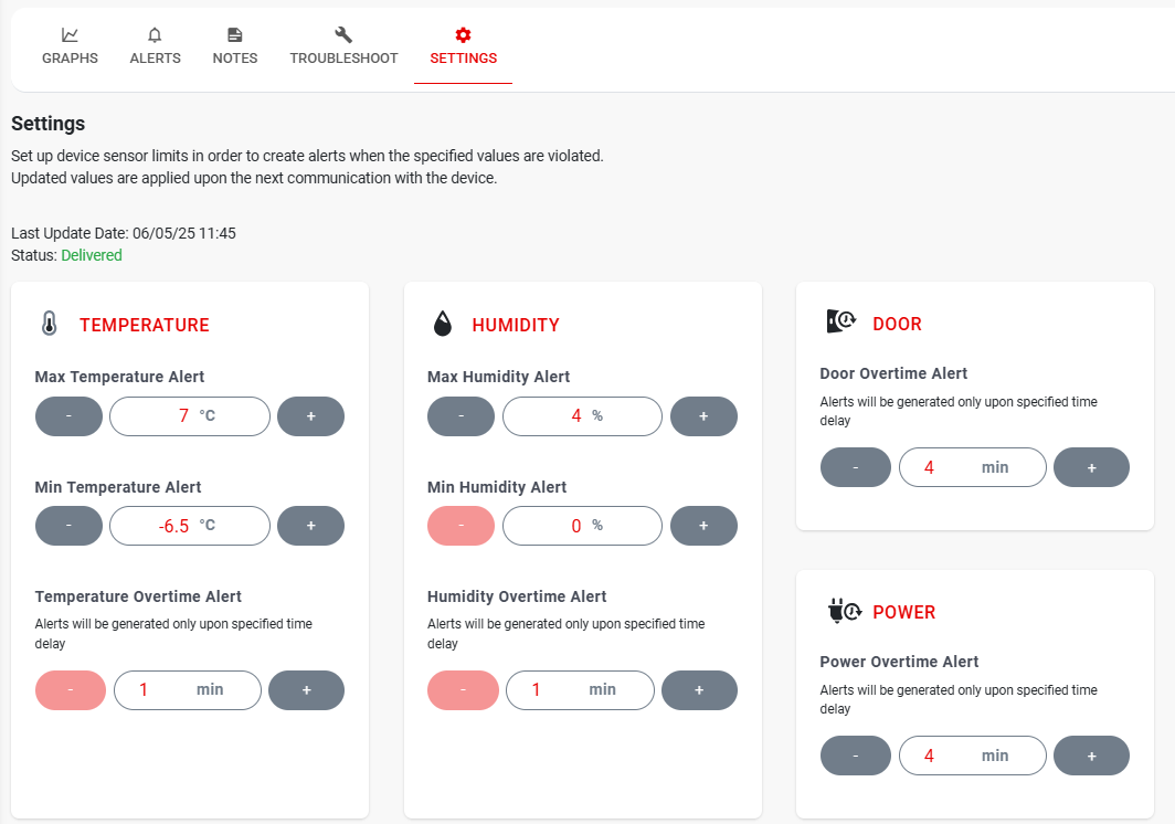 Efficient device management enables instant custom multi-channel push, email and SMS notification in case of violation or deviations of pre-set thresholds