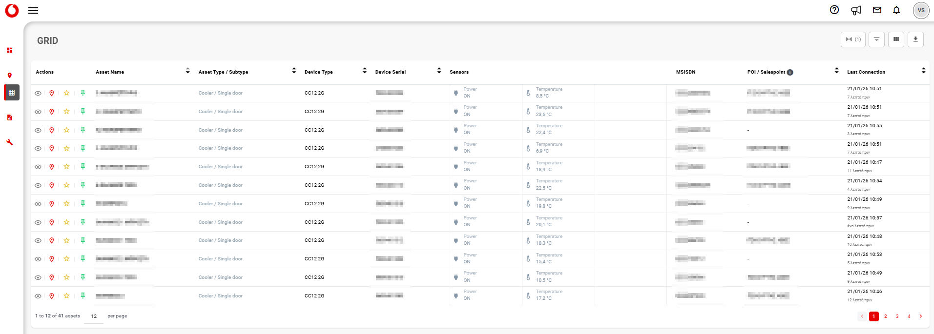 Through the Asset details screen user can monitor the status of each asset at a glance. The screen also features graphical representation and visual indicators for any anomalies or threshold breaches